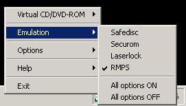 8. После того, как образ диска будет создан, выключаем компьютер и отключаем все приводы CDROM, DVDROM и тому подобные.Это один из самых важных пунктов, т.к. без отключения приводов ничего не получиться. Включаем компьютер. 9. Внизу в трэе (возле часиков в Windows ) у вас должен быть значок Daemon-tools, кликаем по нему правой клавишей мышки. В выпавшем меню выбираем Emulation (см.Рис.5) и ставим галочку на RMPS.